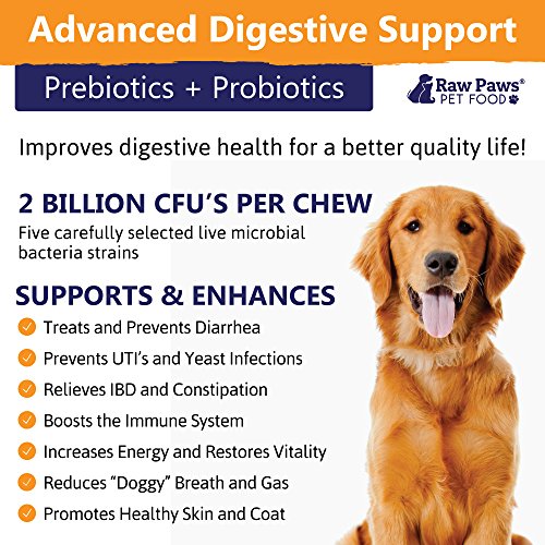 RESTORES DIGESTIVE HEALTH: 2 Billion CFUs per chew! Made with five carefully selected probiotics and prebiotics that work together to create a healthy environment for probiotics to live and thrive!