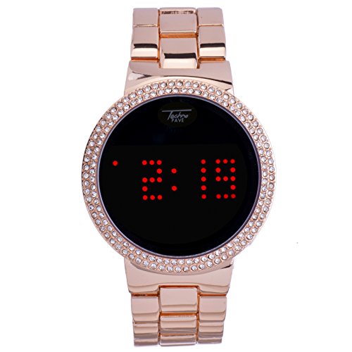 Techno Pave Iced Out Bling Diamond Rose Gold Digital Touch Screen Metal Band Watches WM 8165 RG