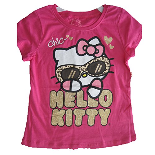Simply adorable, great summery short sleeved top for your little girl from Hello Kitty! Cozy, soft tee is embellished with a cute Kitty applique with leopard spotted accent and also glittery letters on a red background. The T-shirt reveals the famous motif inspired by the well known cartoons.Feature