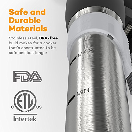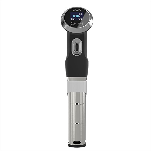 VAVA Sous Vide Precision Cooker BPA-Free Thermal Immersion Circulator with Accurate Temperature Digital Timer Display & Silicon Clamp (Auto-Start, FDA Approved, 110V, 1000 Watts, Black/Stainless)