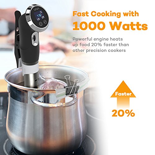 Fast Cooking with 1000 Watts: Powerful engine heats up food 20% faster than other precision cookers