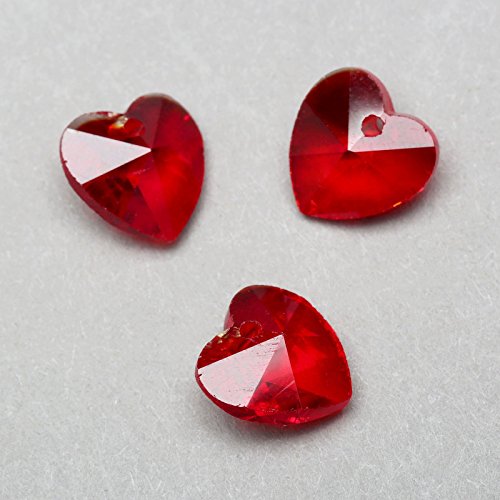 Dophee 20Pcs 10mm Glass Crystal Heart Shaped Spacer Beads for Jewelry Earring Findings Pendants, Red