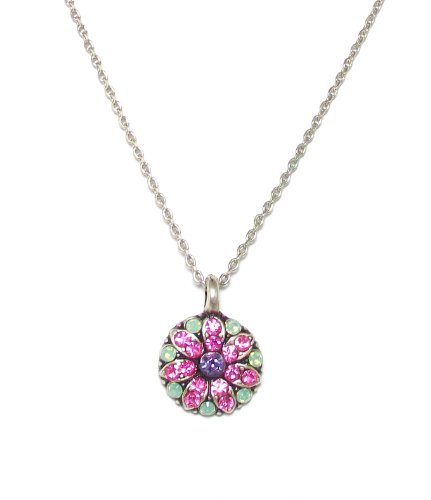 -. Feature : Antique .925 silver plated pendant necklace with Guardian Angel Swarovski Crystal/flower in Chrysolite Green, Violet and Light Rose Swarovski Crystals. / Flower Pendant is .5 inch in diameter with 16 inch adjustable faceted chain with extender. Guardian Angel symbol in Back. / Lifetime unconditional guarantee! / Coordinates with other pieces in our Mariana "Flower Power" Collection. / Made in Israel by Mariana