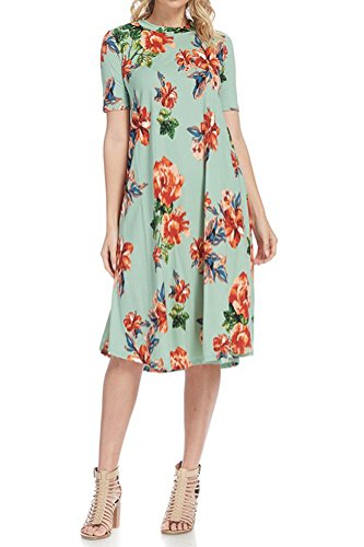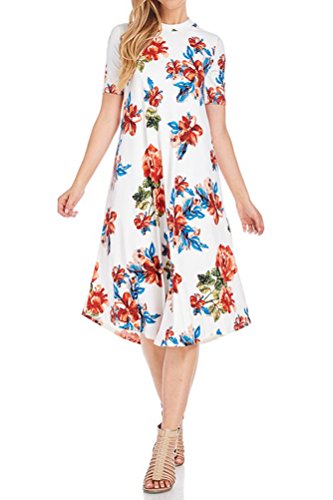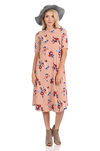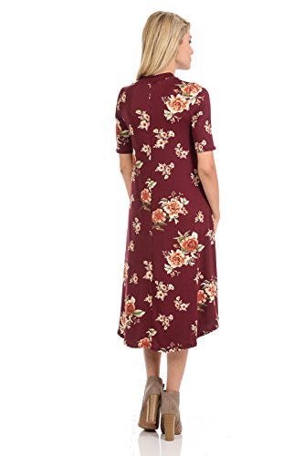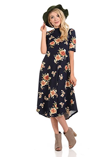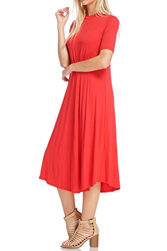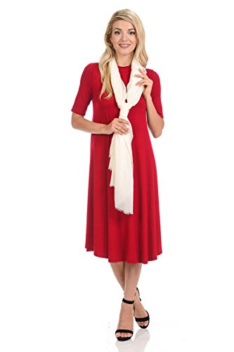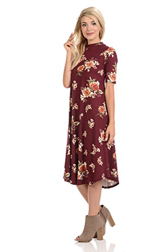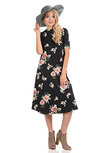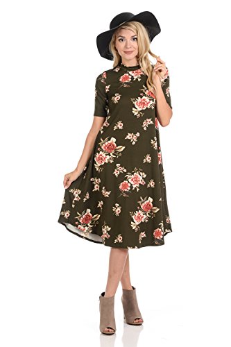 This lovely dress features half sleeves, mock neckline, midi length and figure flattering A-line silhouette. It is made of soft jersey knit that has great drape.