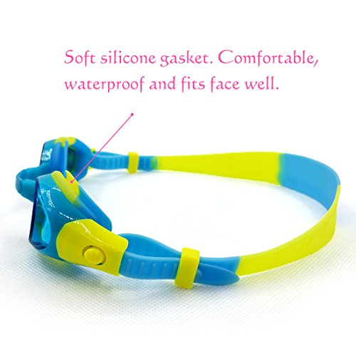 Premium Silicone Swimming Goggles for Children-Made from odorless and hypoallergenic silicone, the goggles are latex and PVC free,soft and flexible, which is especially recommended for your children. Give your children these goggles that can stay steadily during each and every water-based activity
