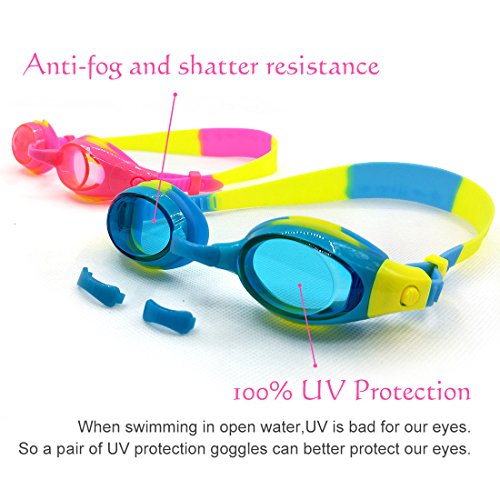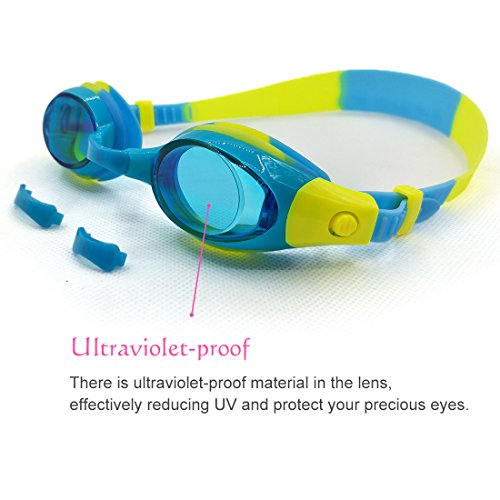 Excellent Kids Swimming glasses with high quality lenses- Impact-resistant PC lenses, all of which offer anti-fog and UV protection, defend your kids' delicate eyes from UV rays and provide an optimal clear vision.