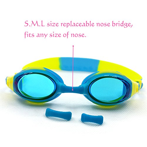 Good goggles comes with FLEXIBLE NOSE-PIECE and earplugs: Try the various size nose bridges supplied (S/M/L),select the correct width. The soft and pain-free nose piece is suitable for different nose bridge. It is necessary for parents to help your children with putting on or removing the goggles