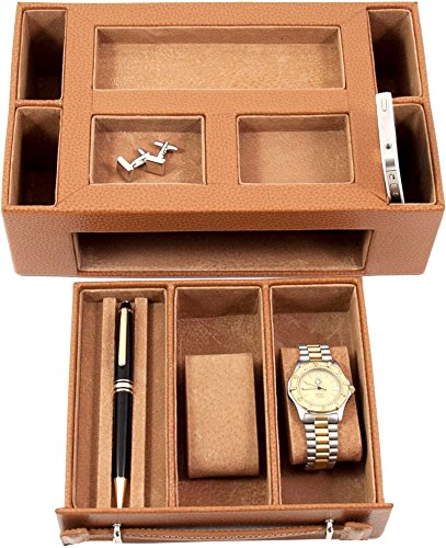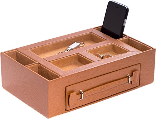 Leather Valet Box with Pen & Watch Drawer - Leather - 11W x 3H in.