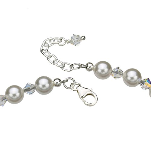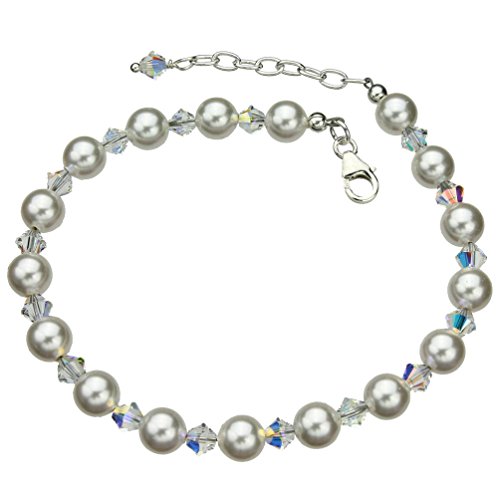 -. Title : Swarovski Elements Crystals and Simulated Pearls Sterling Silver Anklet, 9"+1" Extender
