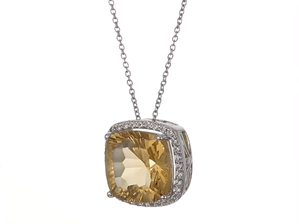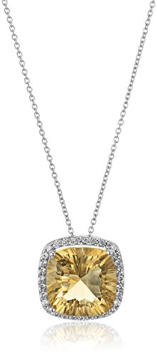 Sterling Silver Citrine and Lab White Sapphire Cushion Pendant Necklace, 18"
