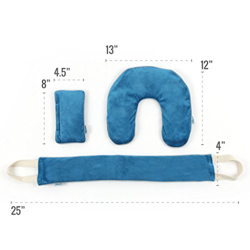 - Feature : VALUE SET - Contains three products - Neck / shoulder pillow + eye pillow + body Wrap. Reusable natural flax seed and herb fill provides BOTH moist heat and cool therapy, remedies, pain management and treatment. Freeze or microwave the packs, depending on your needs. Includes super soft removable and washable velour fabric covers. / VERSATILE - Useful for: general muscle aches and pains comfort, arthritis, chronic fatigue syndrome, fibromyalgia, neuralgia, athletic sport sprains / strains, sleep, shoulder and neck pain, Lumbar strain, Coccydynia, abdominal cramps, spasms, throbbing, stiffness, Osteomyelitis, herniated / slipped disk, Spinal Stenosis, Osteoarthritis, pinched nerve, surgery, bruises, sprains, strains, knotted muscles, inflammation and tightness. Useful for exercises, sports and general relaxation. / PAIN RELIEF & THERAPY - Delivers up to 30 minutes of soothing cool OR heat relief for aches and pains. Simply place the pack in the freezer 20-30 minutes or place in the microwave machine for less than 1 minute (please read directions carefully!). Provides instant pain relief from acute problems or long term stimulation therapy for chronic issues. The therapy spa packs gently provides soothing hot & cold therapy comfort. / FREE FABRIC STORAGE BAG - The aromatherapy Hot & Cold Spa Therapy set comes in a handy fabric storage bag. Made from durable microfiber fabric and features a drawstring closure. Store set in the bag or use it for travel. This bonus storage bag is our gift to you! / TRUSTED - Hot & cold therapy packs are recommended by most Physical Therapists, Doctors, Sports Trainers and Chiropractors. Manufactured in a modern sterile FDA registered facility and sold by FDA registered US company that has been doing business for 40 years. Purchasing a Thrive Brand therapy set ensures a safe, sterile and regulated product. Every Thrive Brand product is backed by a no questions asked one-year warranty.