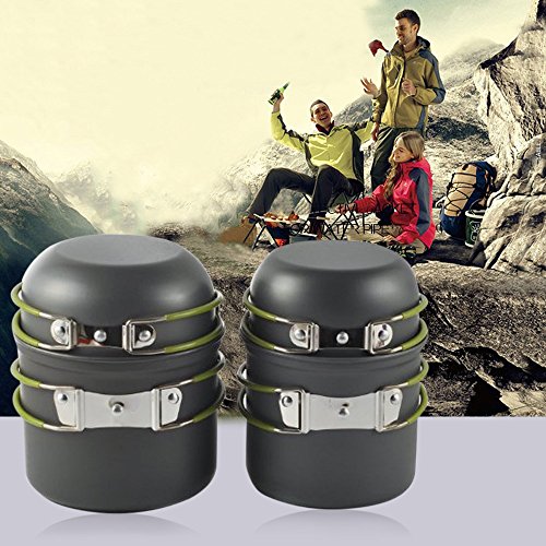 -. Brand : Generic -. EAN : 6901993150151 -. Feature : - This outdoor cooking set is designed for two or three people. / - The pots and bowls are made of anodised aluminum, which makes it solid and light. / - There are foldable handles on pots and bowls. After use, they can be folded to save space. / - Small size and portable. And all the objects in this cooking set can be stored together in a mesh bag for convenient carry. -. Label : Generic -. Manufacturer : Generic -. MPN : 153567601 -. PartNumber : 153567601 -. ProductGroup : Sports -. ProductTypeName : OUTDOOR_RECREATION_PRODUCT -. Publisher : Generic -. Studio : Generic -. Title : 4pcs Outdoor Portable Cookware Anodised Aluminum Pot Bowl Camping Utensils