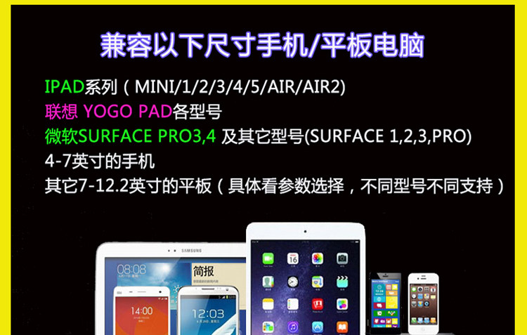 5, for a variety of flat-panel and mobile phones, from 4-inch mobile phone to the 7-inch 8-inch 10-inch 11-inch 12.3-inch, such as IPAD1 / 2/3/4/5 / MINI / AIR.SURFACE 1/2/3 / PRO Lenovo ASUS Samsung and so on (specific need to select the relative model