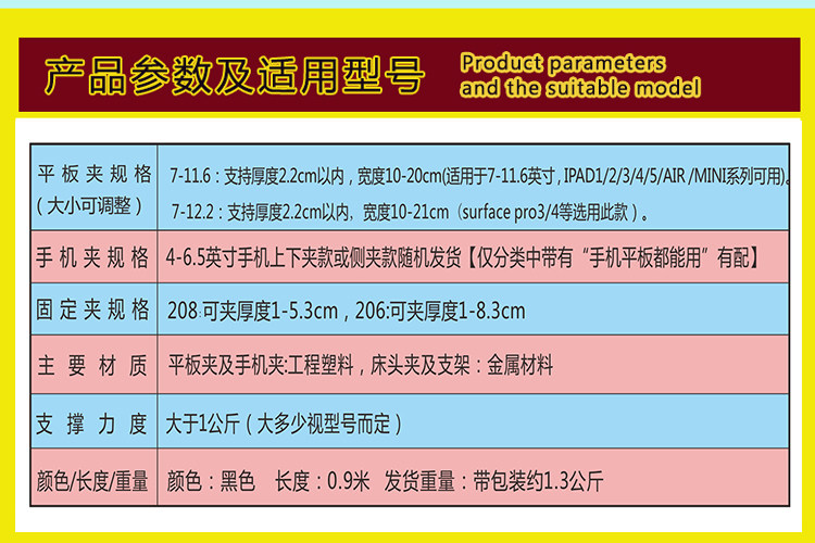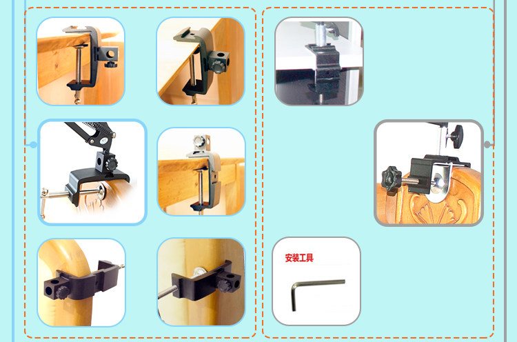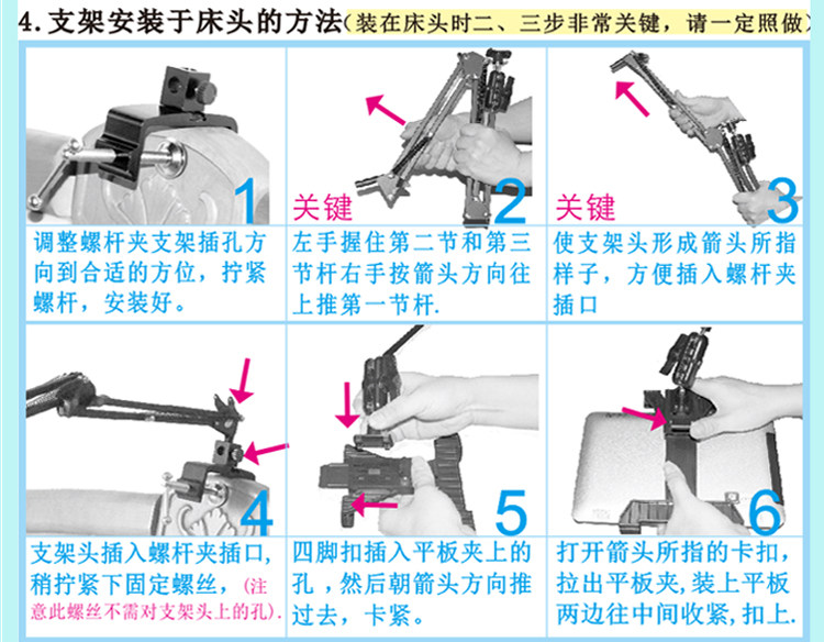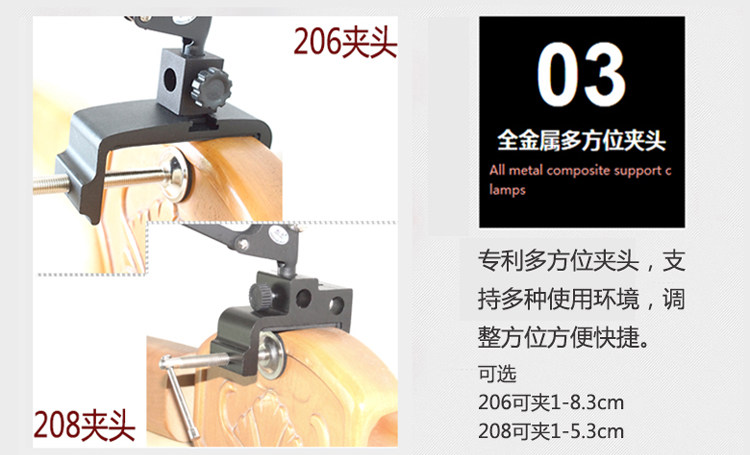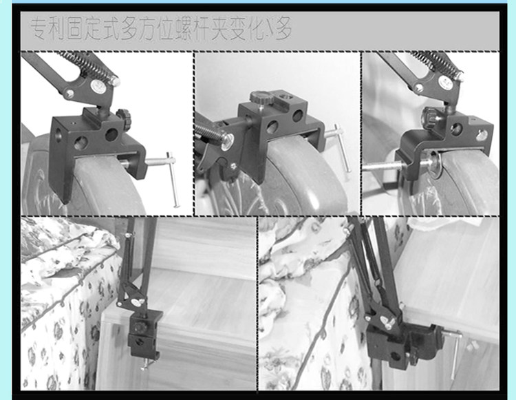 1, multi-directional screw clamp: folder bed head use only the bed from the wall 1cm; clip 1-8.3cm (208 5.3cm, 206 8.3cm); suitable for a wide range, including bedside side, low bed Head, bedside cabinets, desktop table edge and so on.