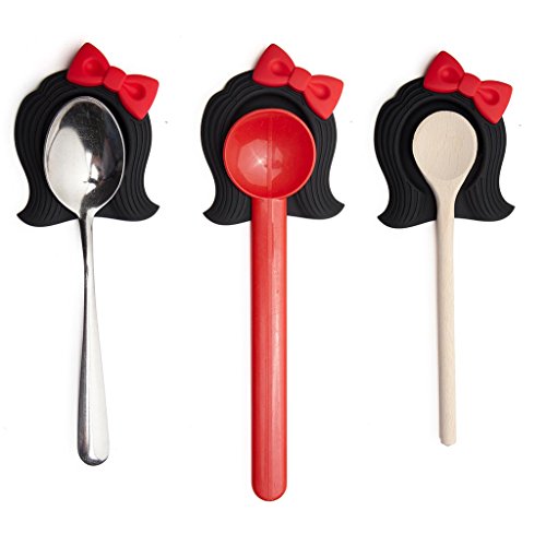 Betty Silicone Novelty Spoon Rest for Stove, Tabletop, Kitchen Utensil Holder, Black, by Monkey Business