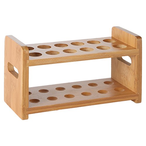 Bamboo Test Tube Rack, 12 Tube Capacity, 7/8" (22mm) Holes, Test Tube Shot Glasses Rack, Spice Tubes Display Rack By Lily's Home. Glass Tubes NOT Included.