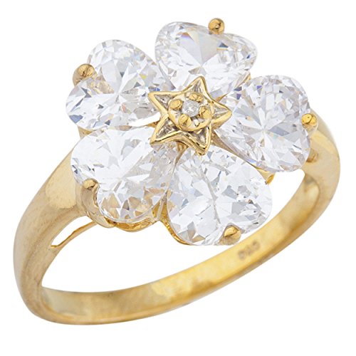 -. Binding : Jewelry -. Brand : Elizabeth Jewelry -. Department : womens -. Feature : This is a beautiful ring design with 5 Hearts and a Natural Diamond. This is the perfect gift for that special someone and for any occasion. / Solid .925 Sterling Silver with 14Kt Yellow Gold Plating / 15mm Face of Ring, 6mm Created White Sapphire Hearts / 0.005 Carat Natural Diamond / Matching Earrings, Pendants & Bracelets Available -. Label : Elizabeth Jewelry Inc -. Manufacturer : Elizabeth Jewelry Inc -. ProductGroup : Jewelry -. ProductTypeName : FASHIONRING -. Publisher : Elizabeth Jewelry Inc -. Studio : Elizabeth Jewelry Inc -. Title : 5 Hearts Created White Sapphire & Diamond Heart Ring 14Kt Yellow Gold Plated Over .925 Sterling Silver
