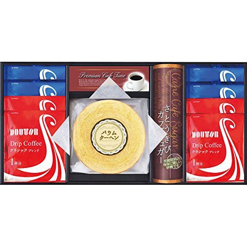 原材料:ドトールドリップコーヒー(クラシックブレンド)7 g×4、ドトールドリップコーヒー(オリジナルブレンド)7 g×4、バウムクーヘン約12.5 cm径×1、さとうきびカフェシュガー×5