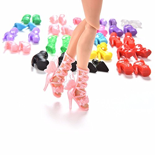 100% Brand New Doll Shoes, Set of 60 Different High Heel Shoes Boots Accessories for Barbie Doll