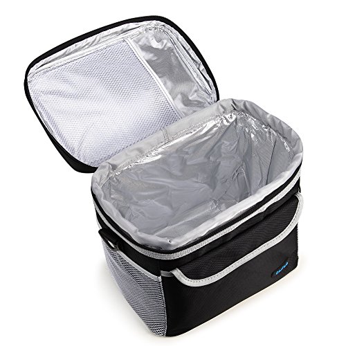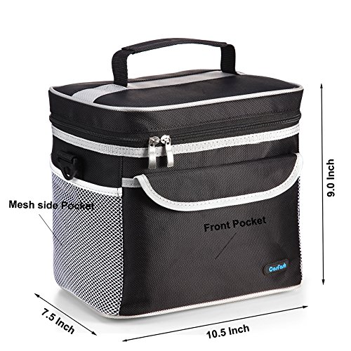 DIMENSION: 10.5L x 9H x 7.5W (inches)- Big enough to hold your lunch,keep in packed state and small enough for you to carry easily.And this collapsible cooler tote can folds when not in use.Mens lunch bag with zip closure is easy to carry with comfort-grip handle and adjustable removable shoulder strap.