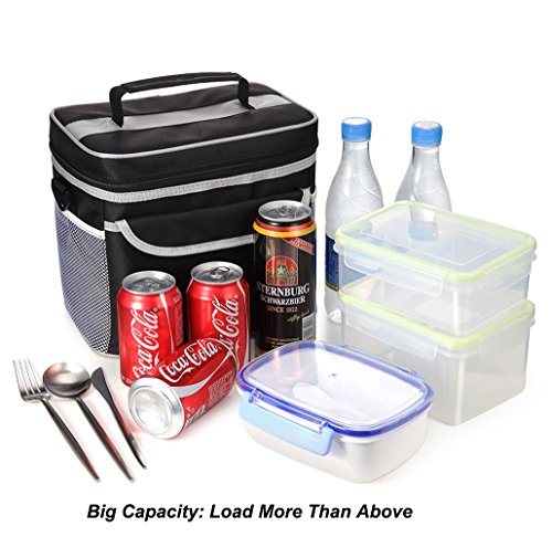 PERFECT FOOD TEMPERATURES: Large compartment insulated on all sides with thick 9mm EPE foam and aluminium foil pad provides excellent insulation to keep food fresher longer.And the meal prep lunch box perfectly keep the food and drinks cool or warm temperatures.It can be used as cooler bags,picnic cooler tote,kids lunch box,sundry bag or shopping bag have heat preservation,cold,fresh function.