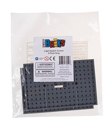 -. Binding : Kitchen -. Brand : Strictly Briks -. Color : Gray -. EAN : 0806810332528 -. Feature : Strictly Briks® items are compatible with all major brands of bricks, including L.E.G.O® and Mega Bloks® brand sets. Strictly Briks® is not affiliated with or endorsed by these brands. L.E.G.O® is a trademark of the L.E.G.O Group of Companies, which does not sponsor, authorize, or endorse Strictly Briks® toys. / The front face of these light switch covers are covered in pegs designed to fit building bricks from all major brands. The back side has been engineered to ensure that the plate fits snugly against the wall. / These Strictly Briks light switch covers are a great addition to any bedroom or playroom. / Each of the single switch plates mount easily with two screws that are not included. This set includes two gray single switch plates measuring 3.5" x 5.25". / Backed By Our 100% Satisfaction Guarantee (Details Below in Description) -. IsAutographed : 0 -. Label : Strictly Briks -. Manufacturer : Strictly Briks -. Model : 806810332528 -. MPN : 806810332528 -. PartNumber : 806810332528 -. ProductGroup : Home -. ProductTypeName : HOME -. Publisher : Strictly Briks -. Size : 2 Single Switch Plate -. Studio : Strictly Briks -. Title : Premium Gray Building Bricks Light Switch Cover Plate 2 Pack - Compatible with All Major Brands -. UPC : 806810332528