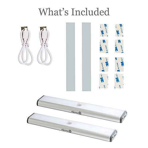 2 Pack Geekeep Rechargeable LED Motion Sensor Light Under Cabinet Lights,Wireless Motion Activated Closet Lights Stick on Anywhere for Hallway,Stairs,Cupboard,Wardrobe,Bedroom,Drawer,Cool White
