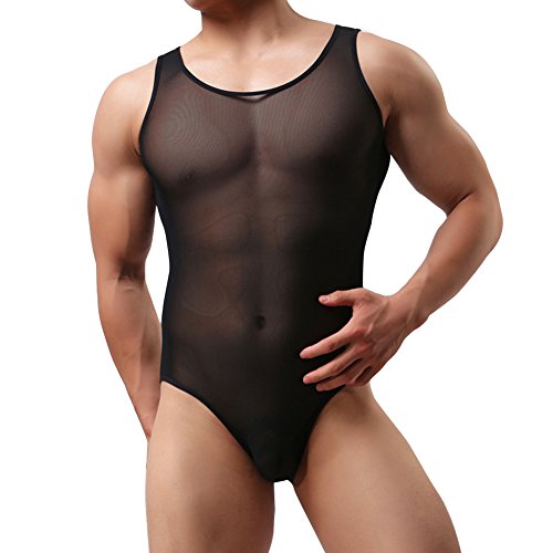 -. Feature : Sexy Einteiler Männer Mankini High Cut Thong Leotard, semi-transparent. / Rundhals, ärmellos, atmungsaktiv. Beste Wahl für Gymnastik, Tanzen, Schwimmen, Freizeit usw. / Größe M: Tailleumfang 30.0-48.0"/76-122cm, Schulter zum Schritt 25.5"/65cm. / Größe L: Tailleumfang 31.5-50.0"/80-126cm, Schulter zum Schritt 27.0"/68cm. / Größe XL: Tailleumfang 33.0-52.0"/84-132cm, Schulter zum Schritt 27.5"/70cm.
