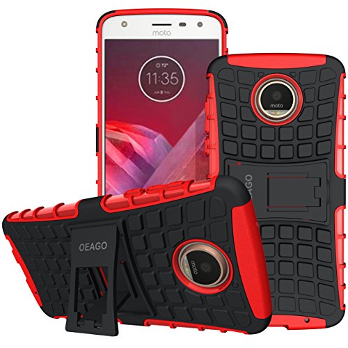 -. Title : Moto Z2 Play Case, OEAGO [Shockproof] [Impact Protection] Tough Red Dual Layer Protective Case with Kickstand for Motorola Moto Z2 Play