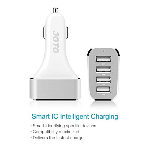 [ USB Car Charger ] JOTO 4 Ports USB Car Charger High Speed Charge (9.6A/48W) with Smart IC Intelligent Charging - Portable USB Car Charger compatible to Apple and Android devices (iPhone 6, 6 Plus, iPad Air 2,Samsung Galaxy, Nokia, Motorola, HTC, LG, Son