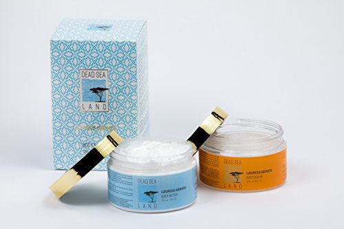 Dead Sea Land Body Butter and Body Scrub Set is a combination of the most amazing and effective body care products. They contain extracts of dead sea salt minerals that work as a perfect exfoliator on the skin.