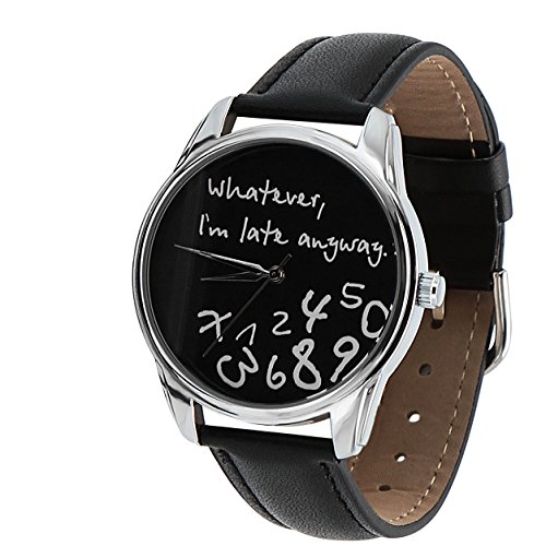 -. Title : Whatever, I'm Late Anyway Watch,The ORIGINAL ZIZ Black Unisex Wrist Watch, Quartz Analog Watch with Leather Band