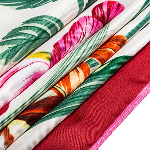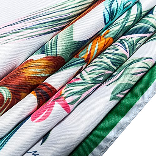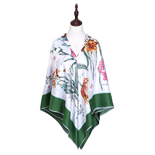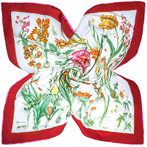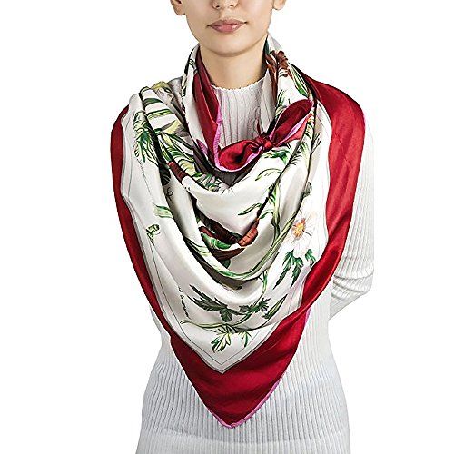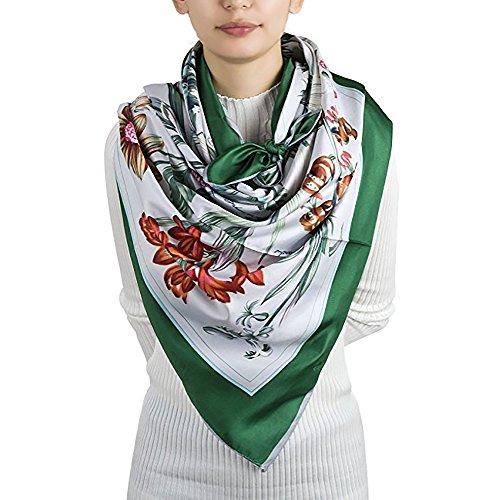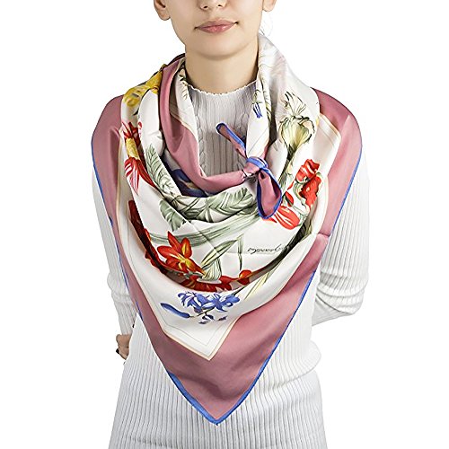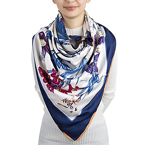 ? Material: High quality 100% polyester satin silk, soft, smooth and shiny. Feeling elegant smooth and soft when you touch this mulberry satin silk. ? Dimension: 55*55 inches, 140*140cm, can be worn around neck, head, waist, or hair as well as on a hat or handbag, etc. ?Washing notice: The best way is wash by hand below 30 ℃ water, if you want to use a wash machine, please put the scarf in a washing bag, avoid the scarf entwined with other clothing getting damaged. ?Note: 1.The pictures were taken in kind 100%, but due to the reason of light and the display, the color may have slight difference. This is inevitable, please understanding. 2.Please be careful with sharp things. The silk scarf is easily hooked.