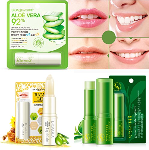 -. Feature : BIOAQUA Canola Honey Aloe Green Tea Lip Balm Deep Moisture Smooth Care 3x4g Set