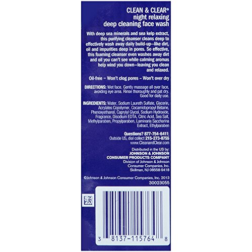 -. Title : Clean & Clear Night Relaxing Deep Cleaning Face Wash, 8 Fluid Ounce