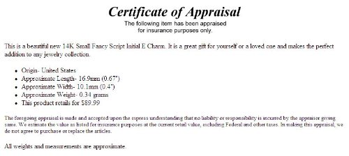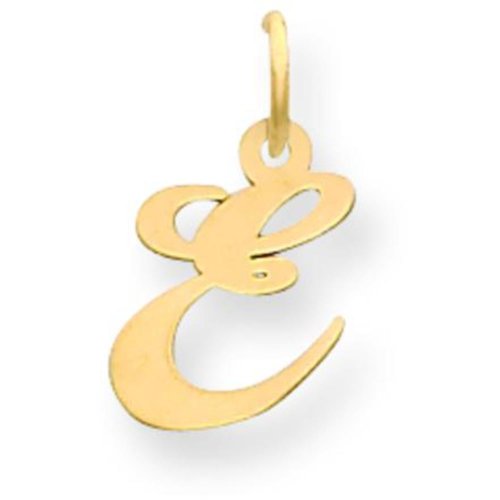 -. Title : 14K Yellow Gold Small Fancy Script Initial E Charm