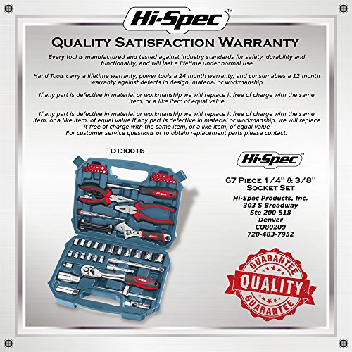 - ✔SAFE STORAGE: Tools are securely housed in a sturdy case that keeps them safe, clean, organised and easy to find. Ideal for storing wherever you need them - garage, workshop, shed or the trunk of your car. This set is covered under the Hi-Spec Hand Tools Warranty