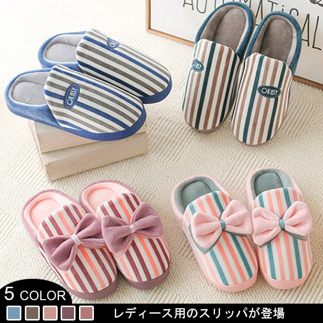 | 商品名 | 男女兼用 スリッパ 裏ボア 秋冬物 レディース メンズ ルームシューズ 滑り止め 防水 ストライプ柄 蝶結び 女性用 男性用 ペアルック |
