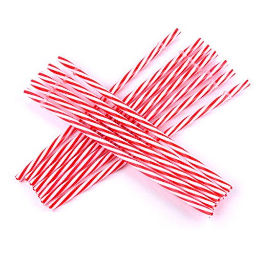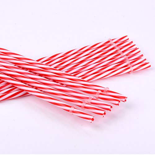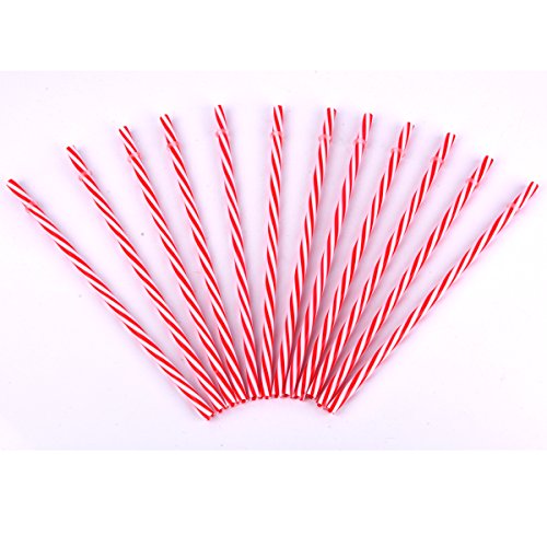 KKMOtech BPA-Free Reusable Plastic Thick Drinking Straws Mason Jar Straws Mix Color Small Stripe (Red 12PCS)