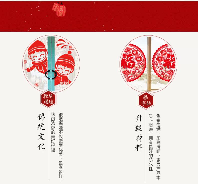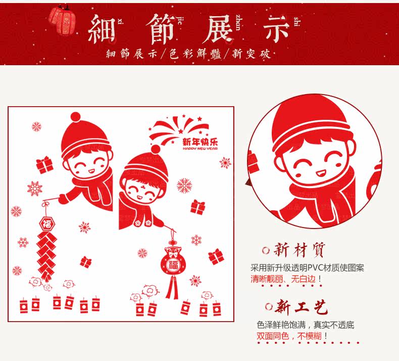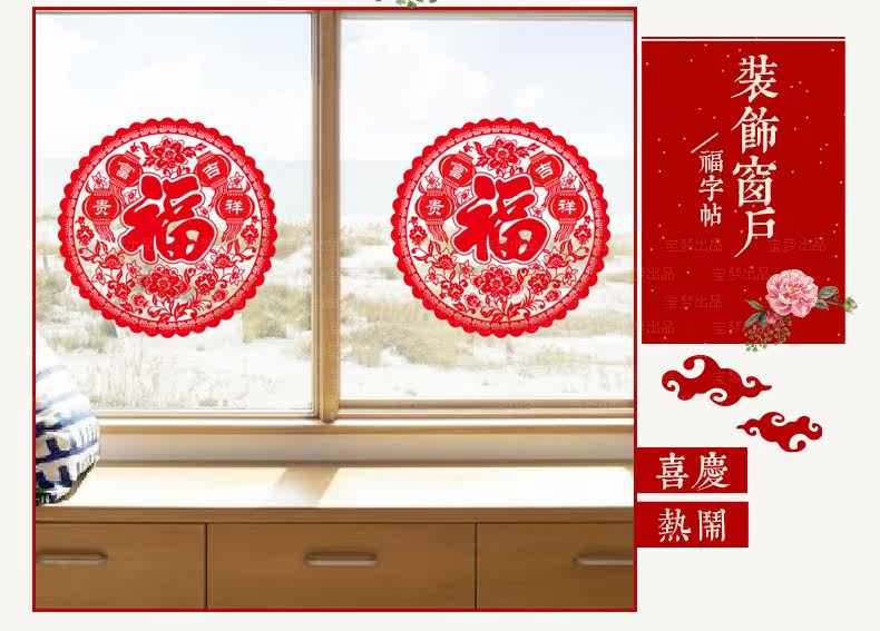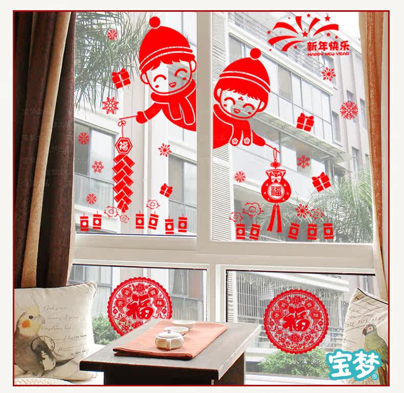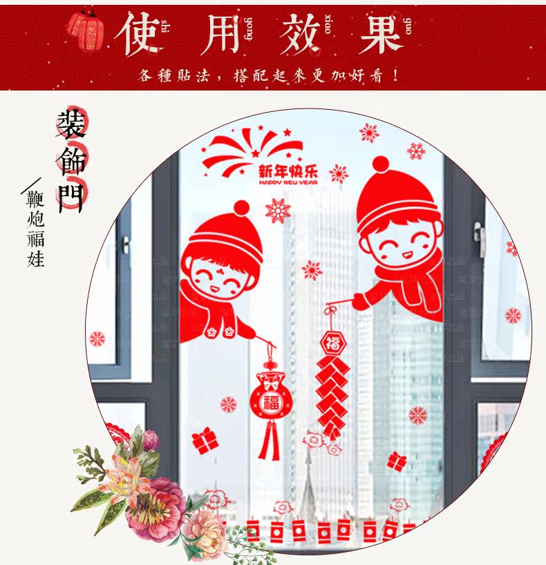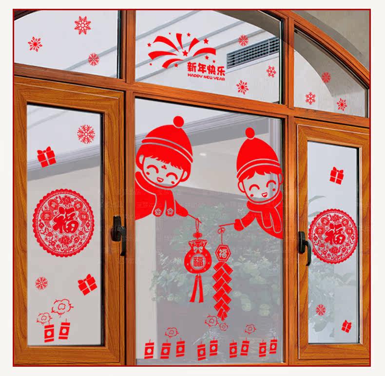 新年装饰品墙贴画元旦场景布置橱窗户玻璃门贴福字剪纸窗花贴