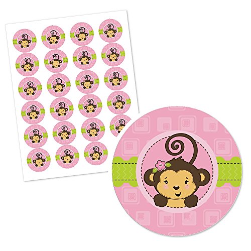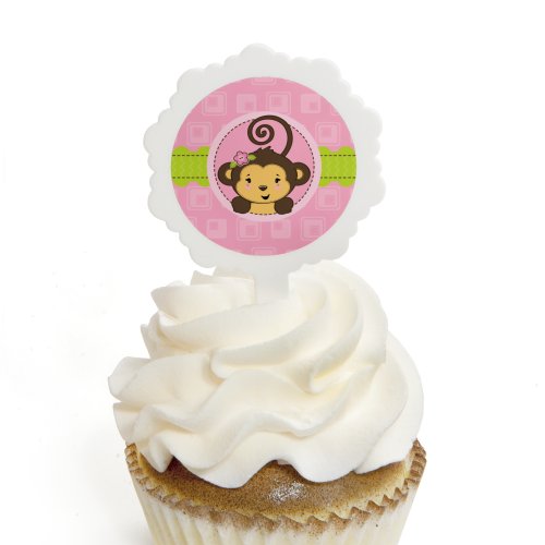 Monkey Girl - Cupcake Picks with Stickers - Baby Shower or Birthday Party Cupcake Toppers - 12 Count