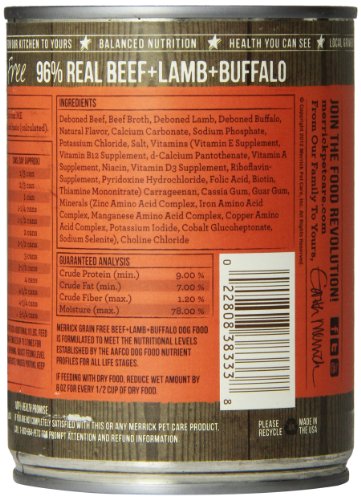 -. Title : MERRICK PET CARE 295815 12-Pack 96-Percent Grain Free Beef + Lamb + Bufflo For Dog, 13.2-Ounce