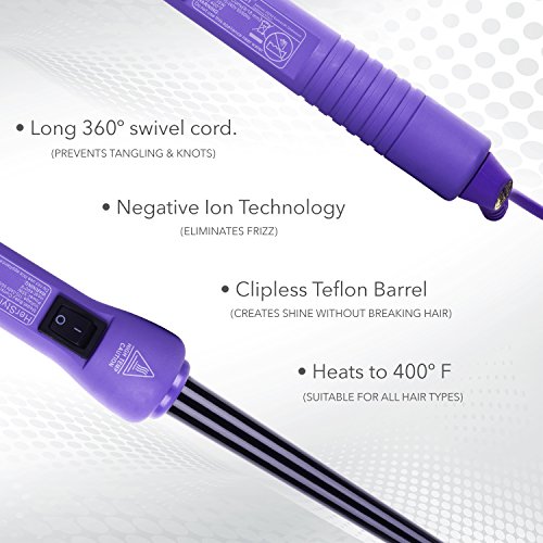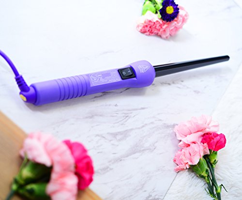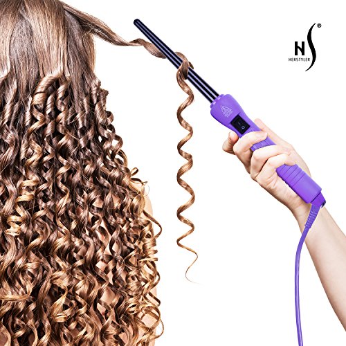 Perfectly carve out tight, voluminous and bouncy curls or sweet, innocent twists with the Herstyler Baby Curls Mini Curling Iron. This lightweight and portable hair curler offers a 9 mm/ 18 mm (1/3 inch/ 3/4 inch) tourmaline barrel that heats up to temperatures of 400 degrees F and cools in seconds while delivering negative ion technology to lock in endless shine in your delicate strands. A clipless wand design allows you to wrap hair easily, and release without the risk of singeing, snagging or crimping your locks.Feature