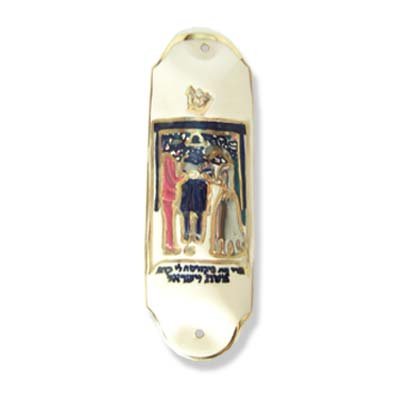 Hand Painted Mezuzah Case - Bride and Groom Under the Wedding Canopy Chupa