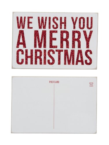 -. Feature : Wooden post card / 6"x4" / WE WISH YOU A MERRY CHRISTMAS / ITEM #22548 / WHITE CARD W/RED GLITTER