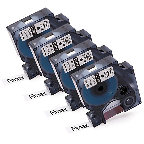 Fimax 4 Pack Label Tapes Cassette Compatible For Dymo D1 45013 S0720530 Black on White 1/2 Inches for DYMO LabelManager 280, 160, 210D, 360D, 420P, 500TS, Plug n Play, Wireless Plug n Play