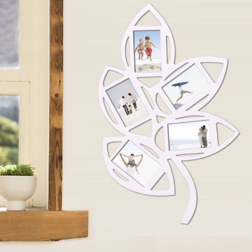 -. Title : Adeco PF0344 Decorative White Wood Leaf Wall Hanging Collage Picture Photo Frame, 5 Openings, 4x6"
