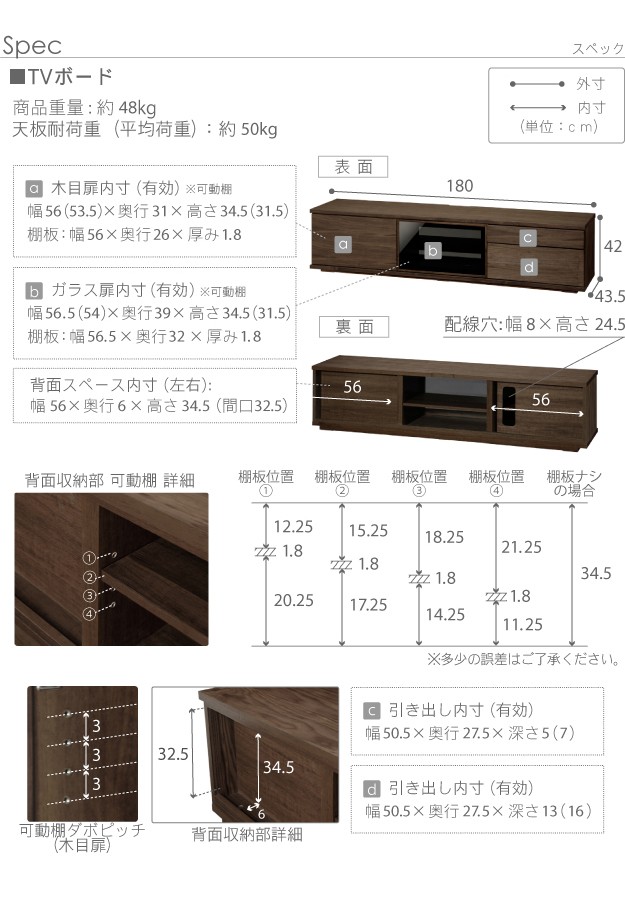 幅180x奥行43.5x高さ42cm・約48kg