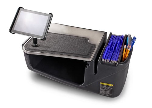 -. Feature : •Be organized and productive in your vehicle / •Auto desk provides writing surface and basic supply storage / •Non-skid surface grips phone, laptop, PDA, or briefcase / •Overall dimensions: 17L x 25.25W x 11H inches