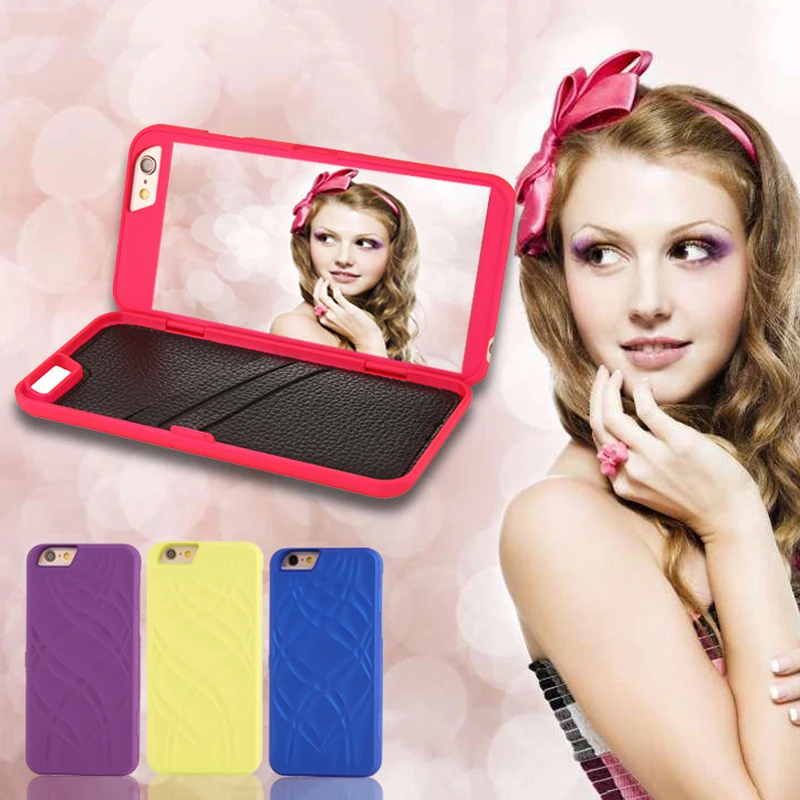 Style 5:3D Concave-Convex Grain Design 3 in 1 Cosmetic Mirror Wallet Case